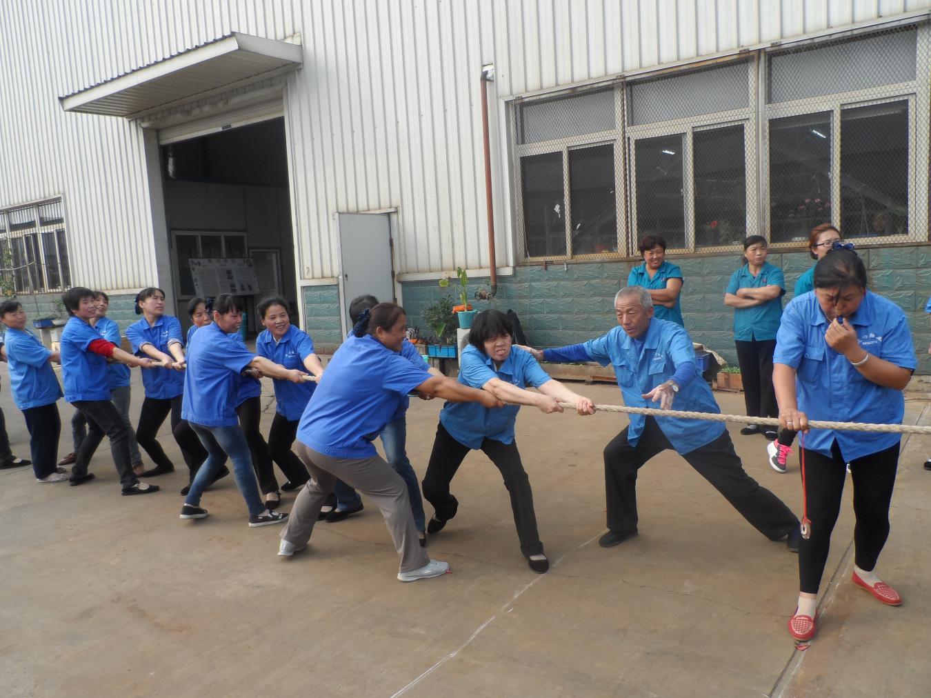 個人項目結(jié)束后,振奮人心的團體項目——拔河比賽開始了,隊員們摩拳擦掌、躍躍欲試。一束紅綢在繩子的中間系起,動力部保潔代表隊與復強部保潔代表隊,各派20名隊員上場,在繩的兩端聚齊力量,只聽主管王雪梅鳴笛后——兩端的隊員們平素積攢的耐力在此刻爆發(fā)。