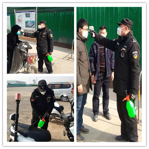 駐漱玉平民集團物流園項目黨員劉宗寶做防控消毒、盤查測溫工作