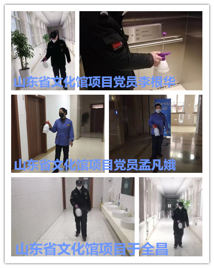 駐山東省文化館項目黨員李根華、孟凡娥、于全昌進行館內防控消毒工作