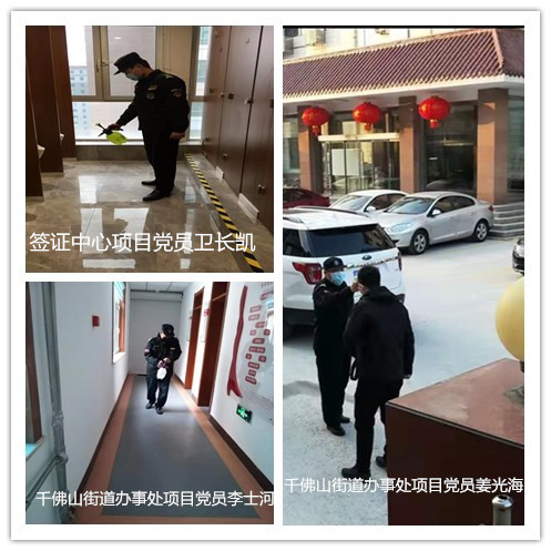 駐簽證中心項目黨員衛(wèi)長凱、千佛山街道辦事處黨員姜光海、李士河進行疫情防控工作