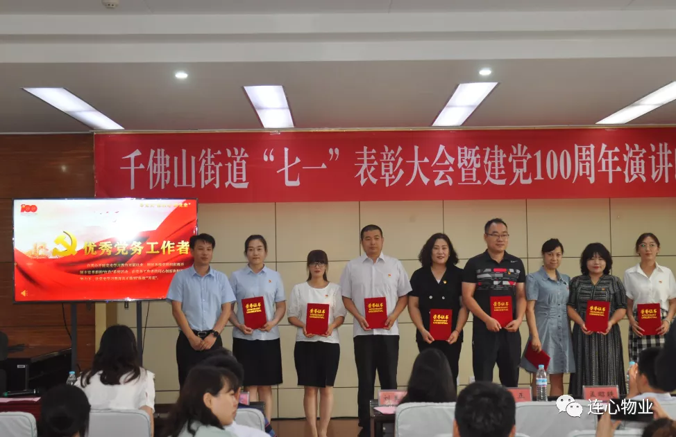 2021年7月9日,千佛山街道舉行“七一”表彰大會(huì)暨建黨100周年演講朗誦比賽。濟(jì)南連心物業(yè)有限公司黨支部孫耀先榮獲“優(yōu)秀黨務(wù)工作者”榮譽(yù)稱號(hào)、卜小溪榮獲演講朗誦比賽二等獎(jiǎng)優(yōu)異成績(jī)。